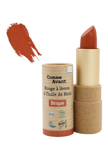 Le Rouge à Lèvres Bio à l’Huile de Ricin – Comme Avant offre des teintes éclatantes au rendu semi-mat tout en nourrissant les lèvres sans les assécher grâce à ses 5 ingrédients 100% d’origine naturels tels que le Beurre de Murmuru et la Cire de Candelilla.